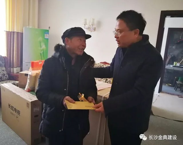 在黨和金典公司的幫助下,彭干秋、姚命成兩家重建家園。這次春節慰問,金典公司給兩家分別送去了40寸的長虹電視機、美的洗衣機、電飯煲、電熱水壺等價值3500元慰問物資。