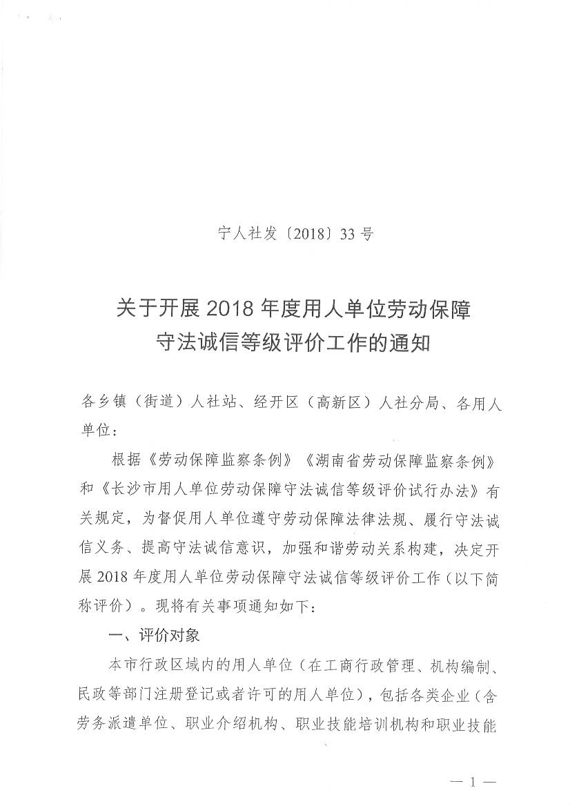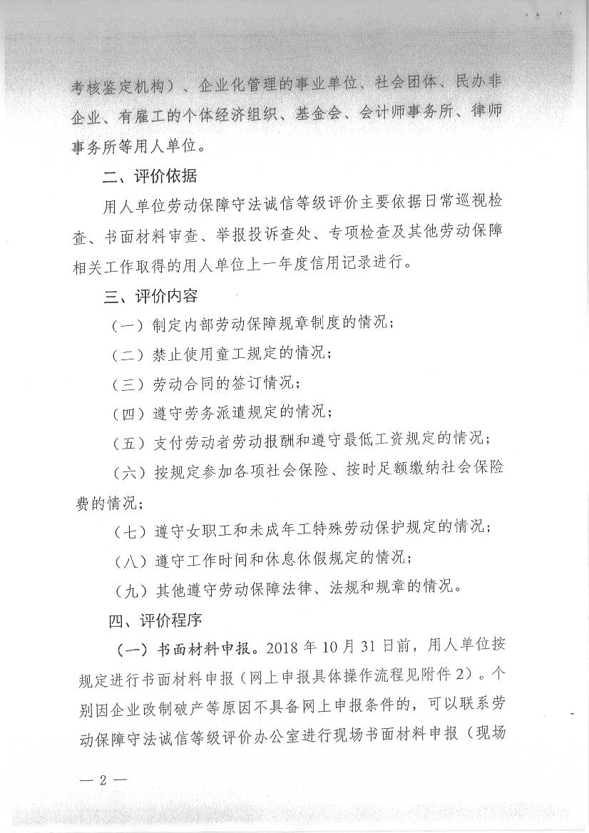 2018年度用人單位勞動(dòng)保障守法誠(chéng)信評(píng)價(jià)工作